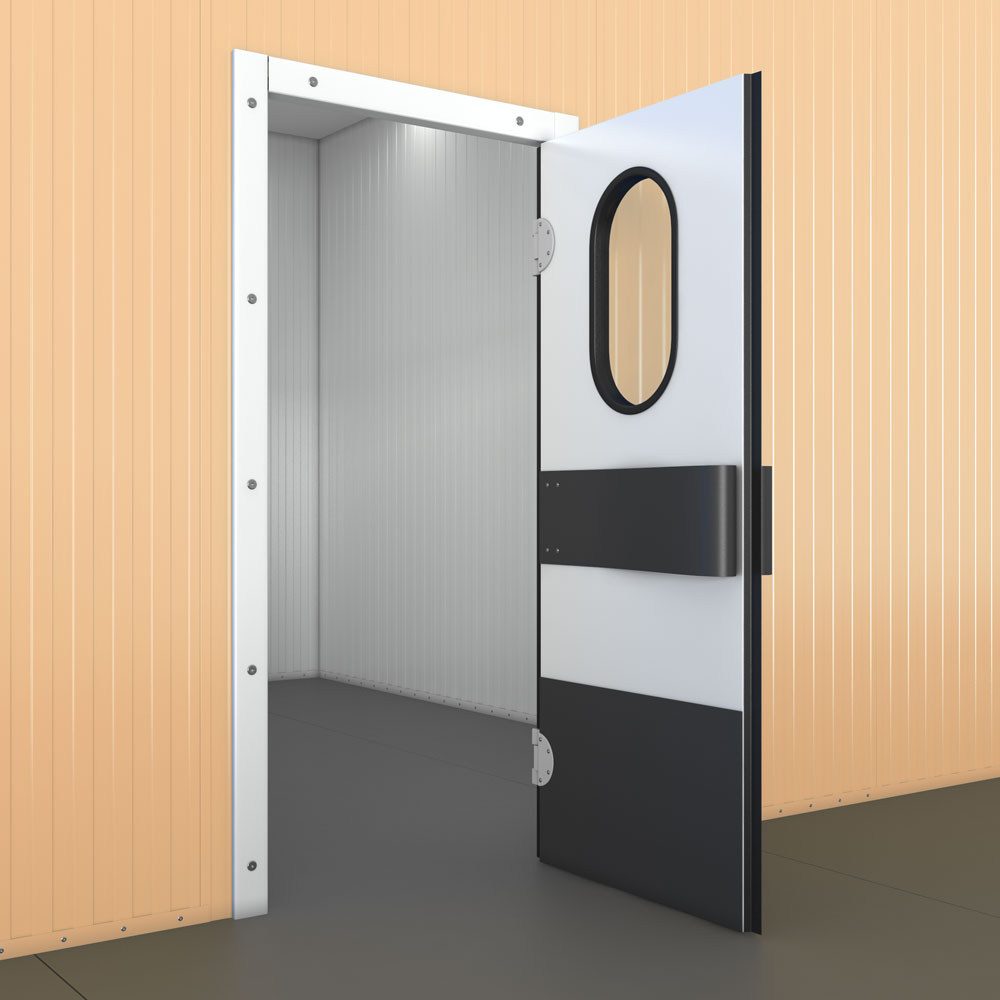 Двери комплектуются надежной фурнитурой KIDE (Испания), Coldtech (Италия) и фурнитурой «ПрофХолод». Два варианта петель: гравитационные и с фиксацией двери.